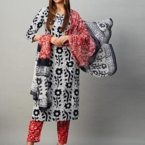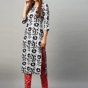 A striking combination of red and black comes alive on smooth poly rayon fabric. This pairing delivers a bold look with a comfortable fit, perfect for festive or casual flair.