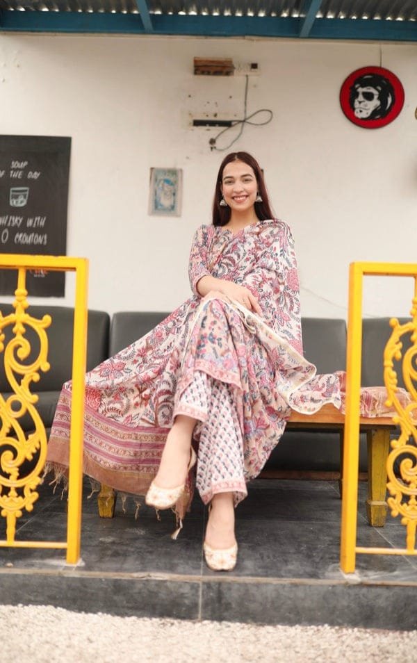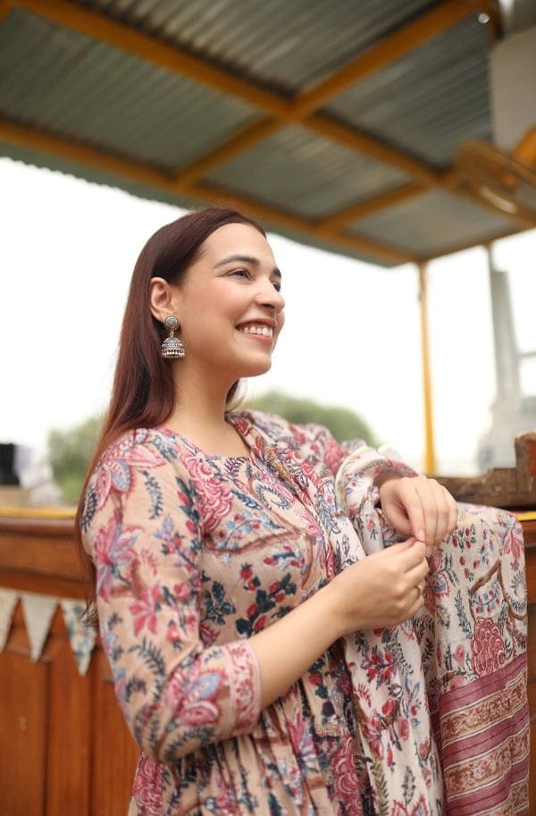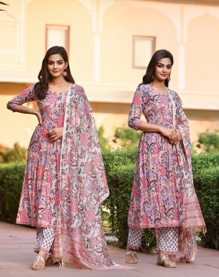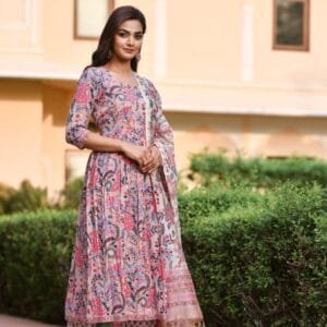 Soft Pink meets silky poly rayon in this beautifully flowing outfit. Perfect for a feminine touch that combines comfort with style.